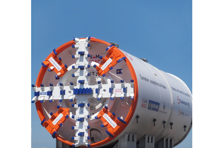 El brazo de excavación evoluciona en una cámara bajo presión de aire comprimido, aislada de la parte trasera de la TBM por una separación estanca.